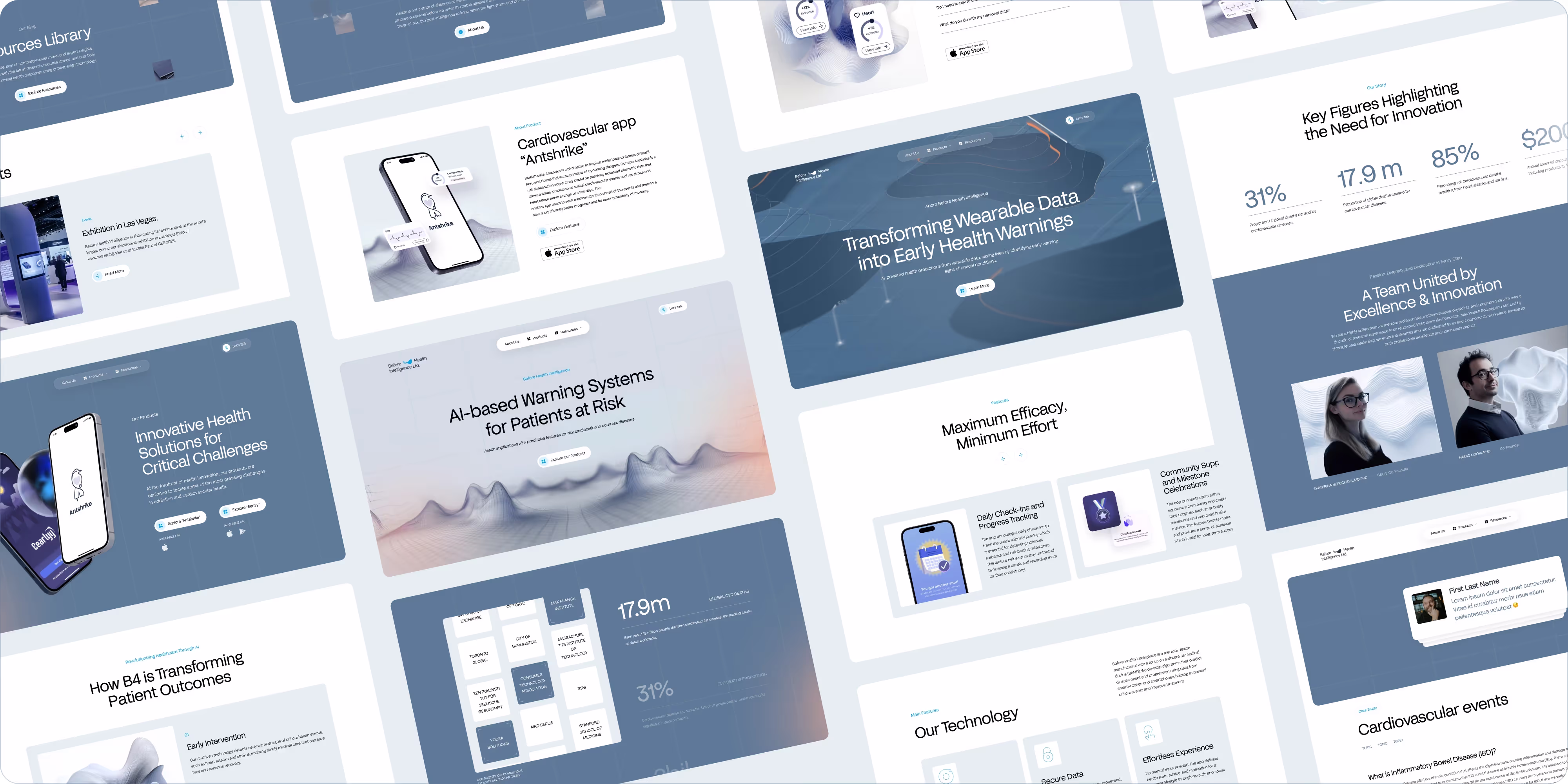 Before Health Intelligence turns real-time biometric data from phones and wearables into early-warning insights for cardiovascular events and addiction relapse. The founders needed a brand presence—and a marketing-ready website—that felt clinically robust yet instantly understandable, highlighting on-device privacy, AI accuracy, and rapid deployment. Brand Vision delivered a full visual refresh, a mobile-first Webflow build scoring 98 + on Lighthouse, and SEO architecture that positions the startup at the forefront of AI in medicine.