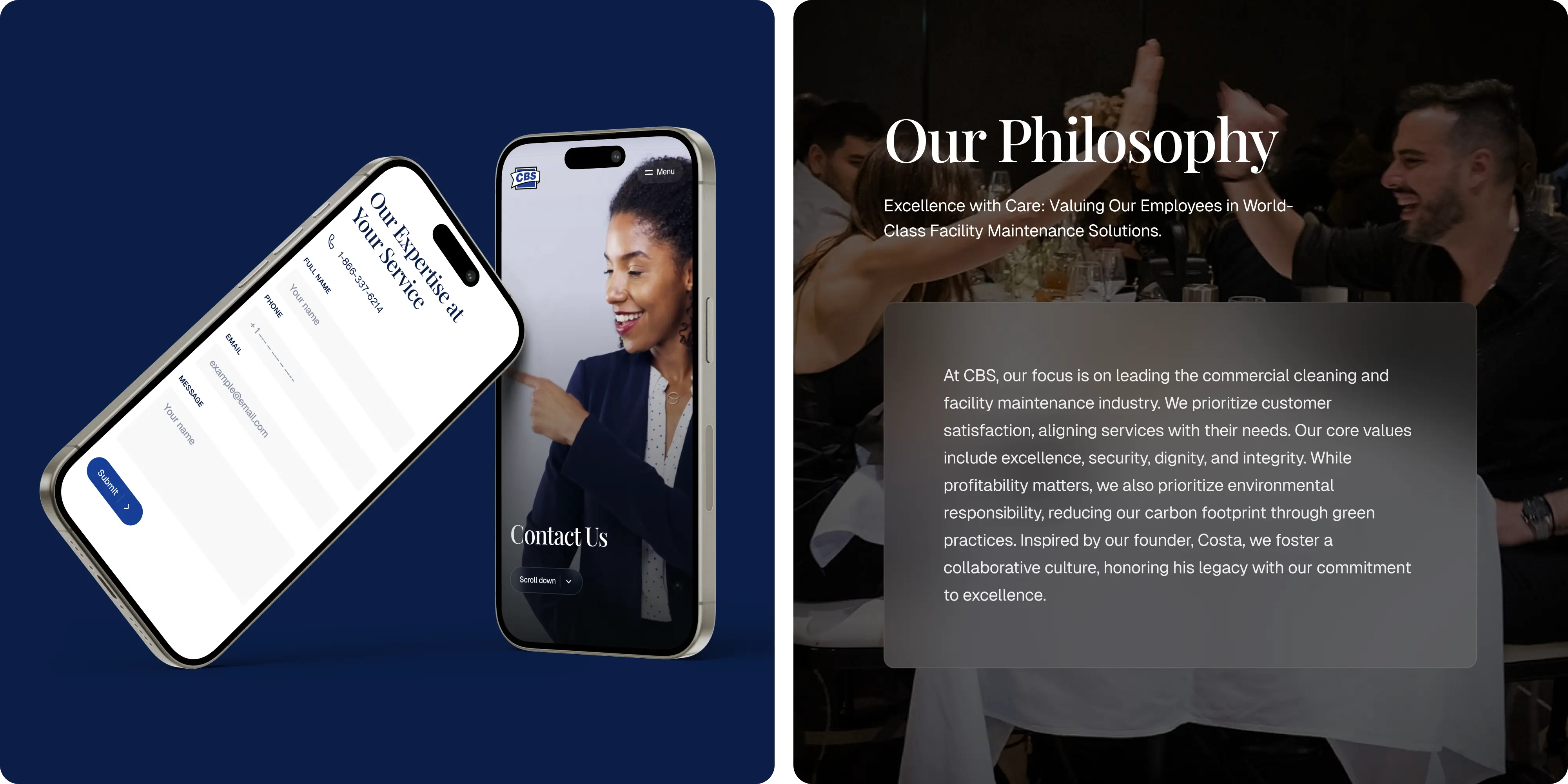 Brand Vision meticulously executed the proposed enhancements to CBS Maintenance's website design. The color palette was refined with careful consideration given to color psychology and branding guidelines. Parallax animations were seamlessly integrated throughout the website, adding a touch of dynamism and interactivity to key sections.