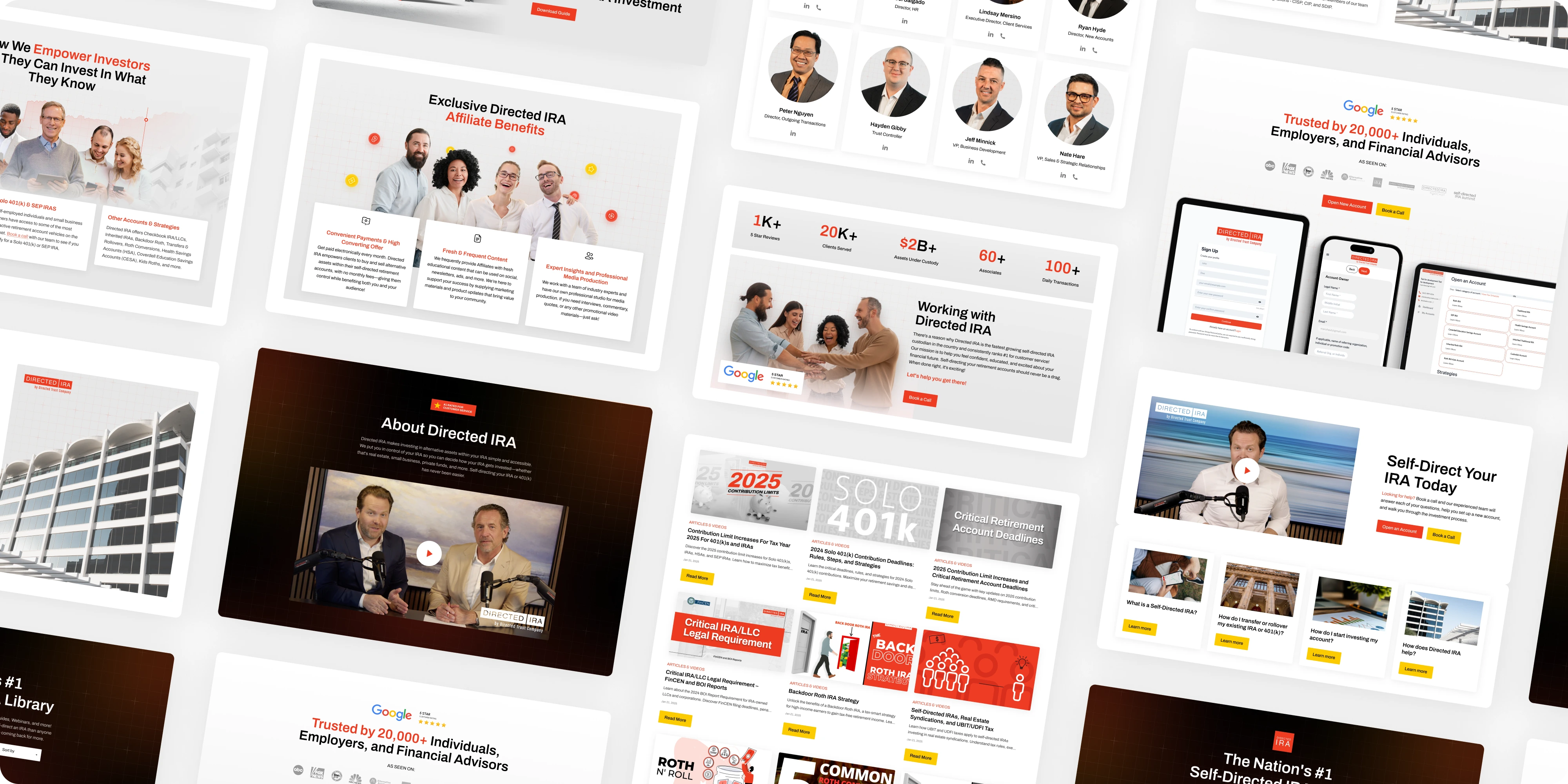 Directed IRA enables investors to place retirement funds into real estate, private companies, crypto, and other non-traditional assets. As demand surged, the team needed a site that built trust, clarified complex rules, and funneled visitors toward account openings and educational resources. Brand Vision delivered: a responsive design with intuitive product pathways, bold credibility cues (testimonials, badges, podcast highlights), and an SEO-friendly structure that captures high-intent searches for self-directed IRAs.