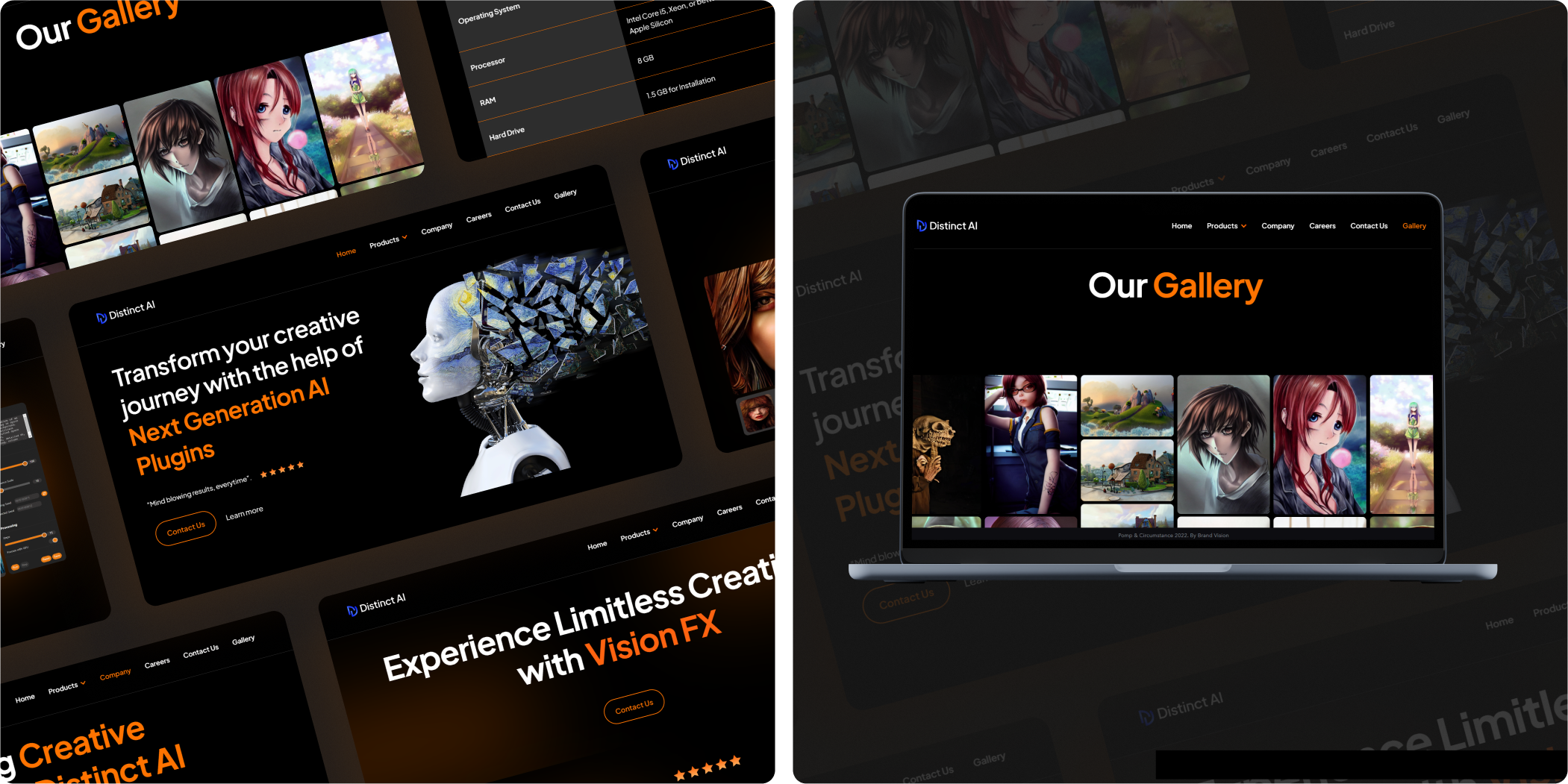 For Distinct AI, we designed and developed a Webflow website with integrated Shopify e-commerce. Our work also involved coding custom elements, resulting in a seamless online shopping experience with a distinctive touch.