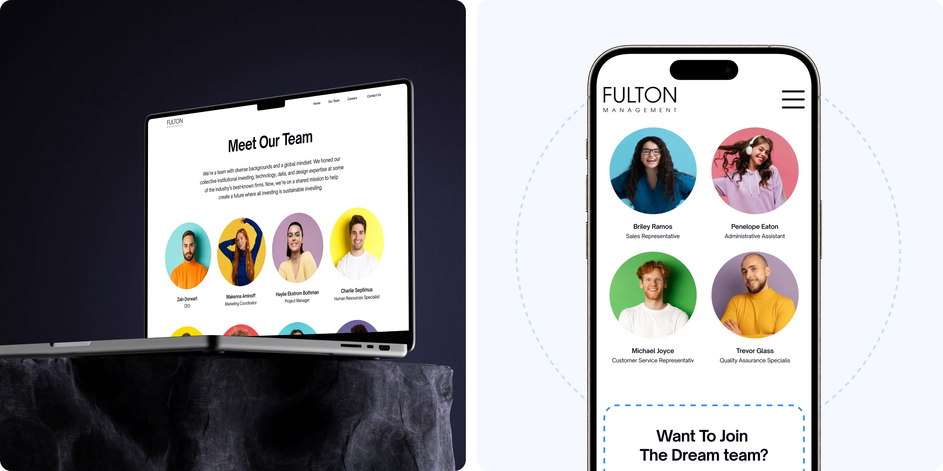 Visually, the website received significant upgrades, including the integration of high-quality images depicting influencers and agents, conveying the vibrant essence of Fulton Management's network. Moreover, a modern and professional color palette was adopted to elevate visual appeal and reinforce brand identity, complemented by contemporary and readable typography to enhance content engagement.