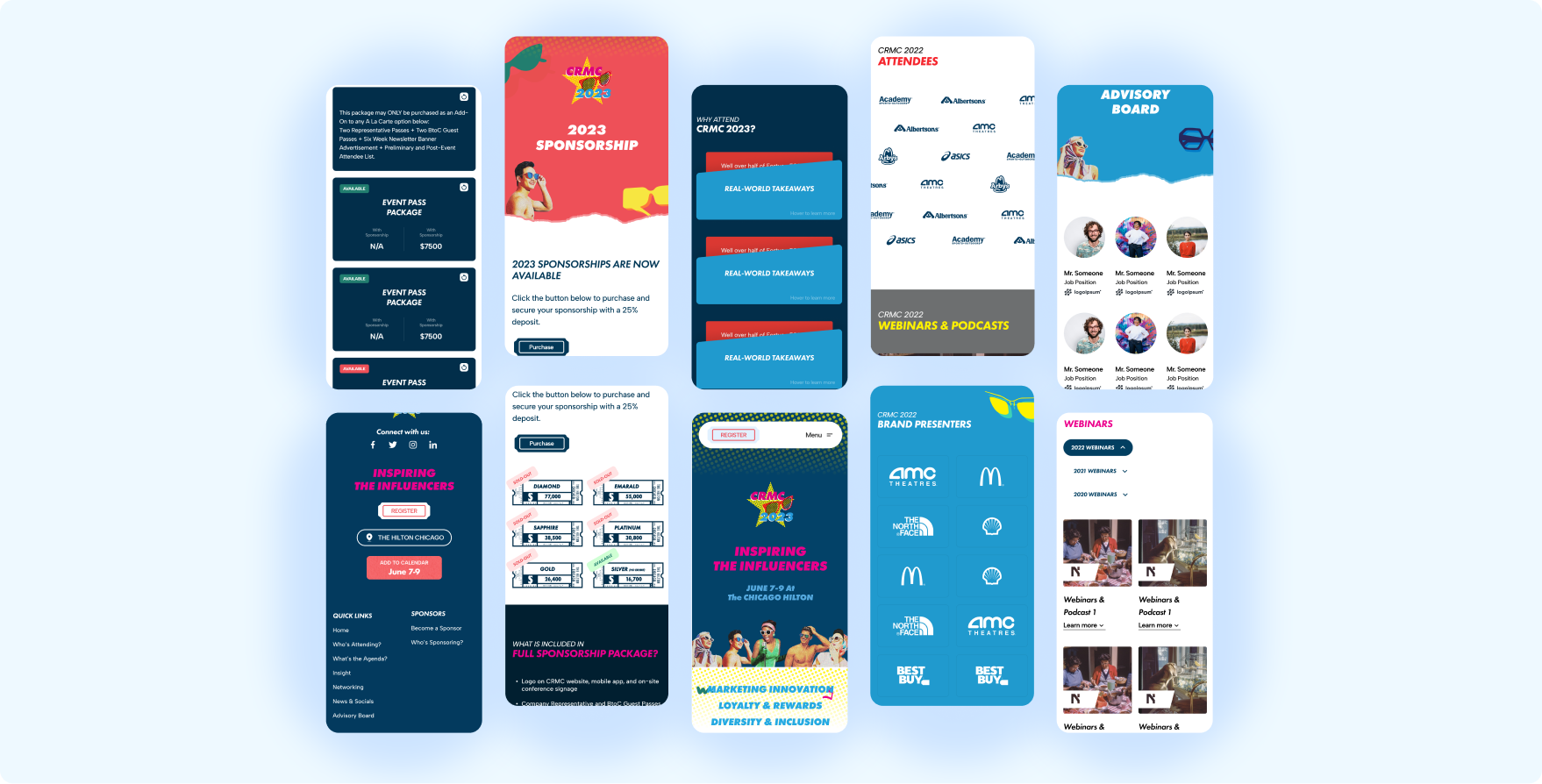 For CRMC 2023, we integrated their fresh 2023 branding into a new website, meticulously crafted on Webflow. Our work extended to content architecture and bespoke illustrations, creating a cohesive and visually compelling online presence.