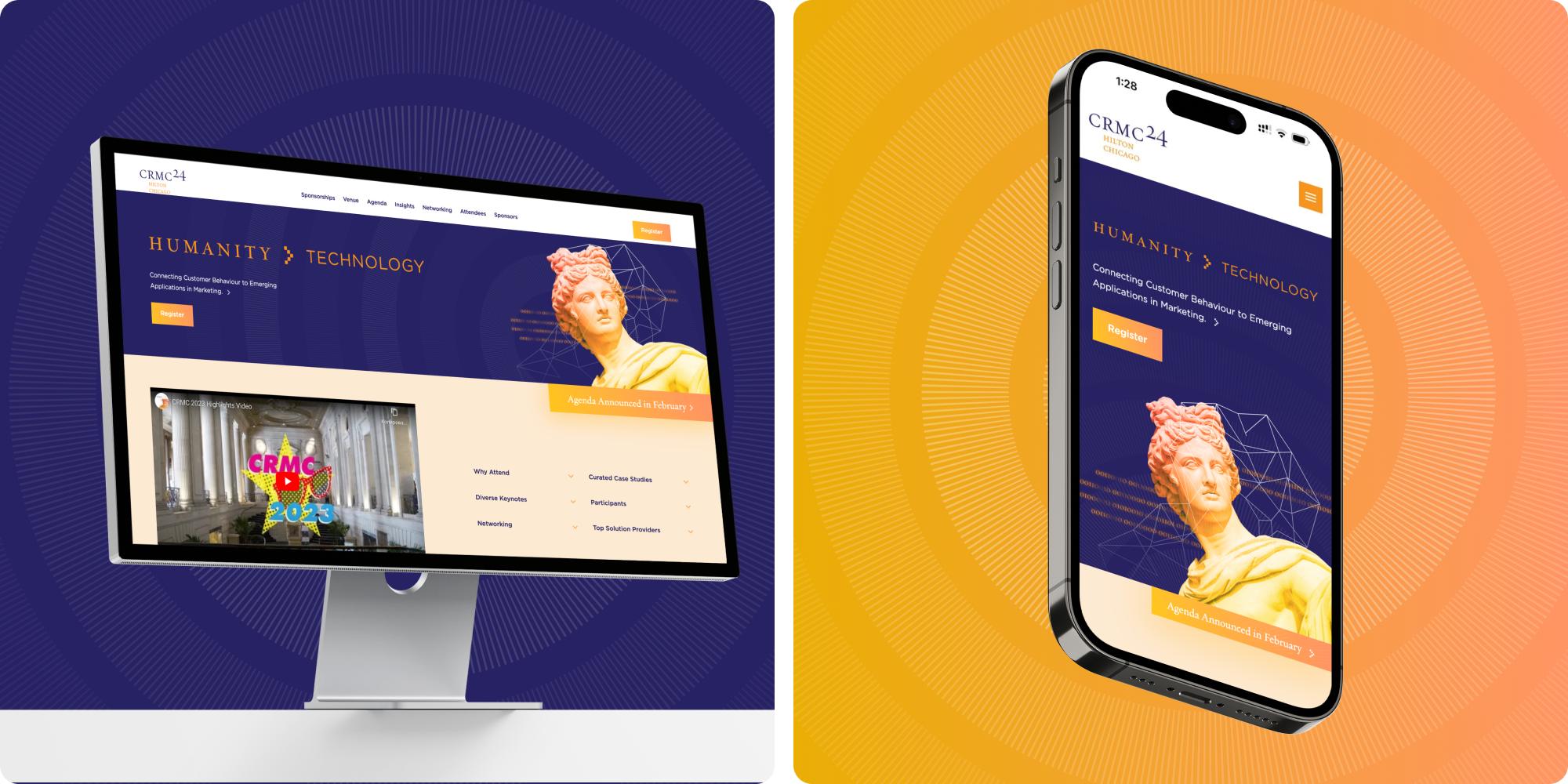In the case of CRMC 2024, we seamlessly incorporated their updated branding for the year into a newly designed website, meticulously crafted using Webflow. Our efforts extended to shaping content architecture and crafting custom illustrations, resulting in a unified and visually captivating online presence.