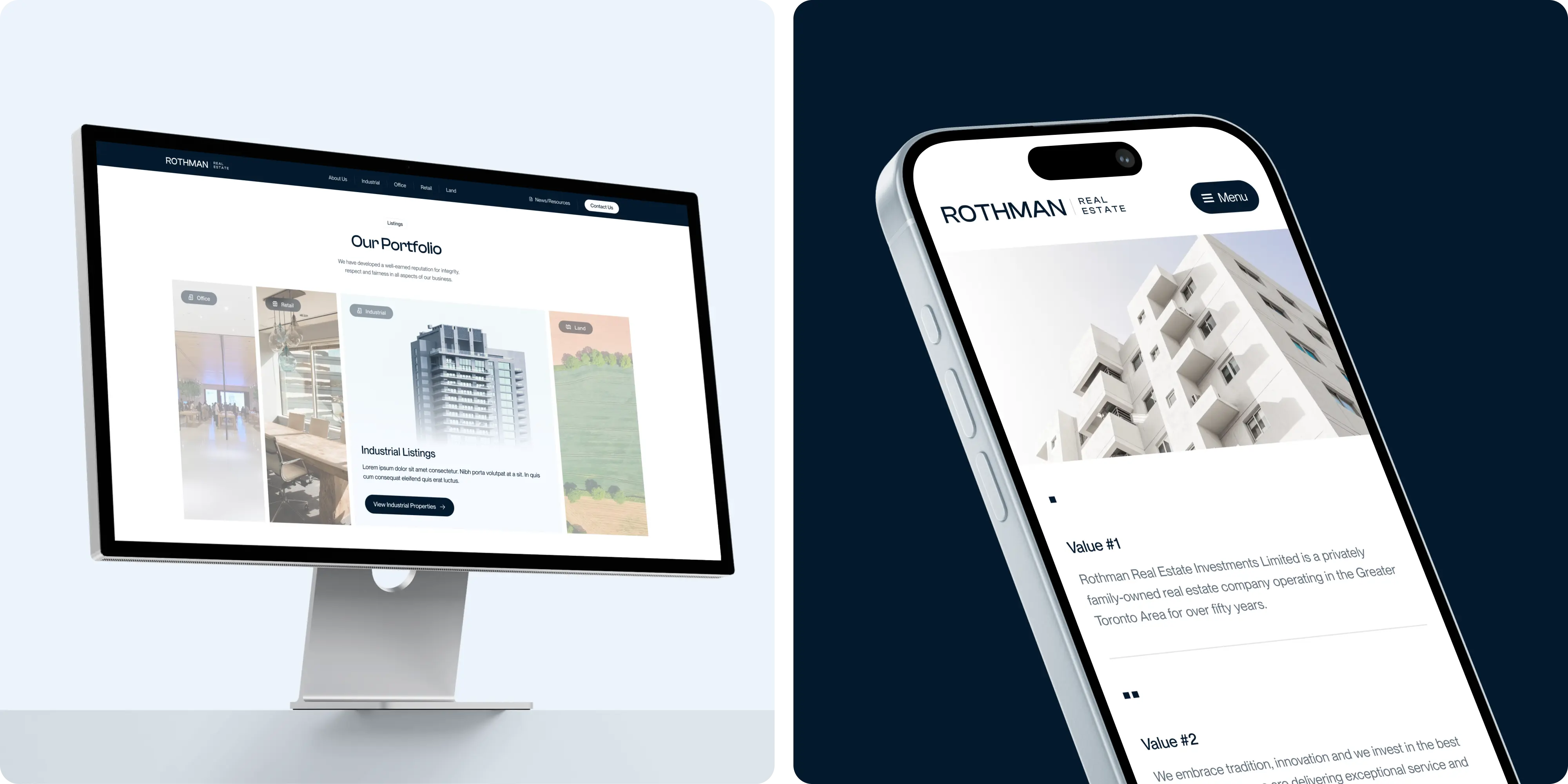 Rothman is a real estate investment firm focused on acquiring, developing, and managing income‑producing multi‑family, commercial, and mixed‑use assets. The website needed to communicate strategy, track record, and partnership pathways with clarity—so investors and stakeholders can evaluate quickly and act with confidence.