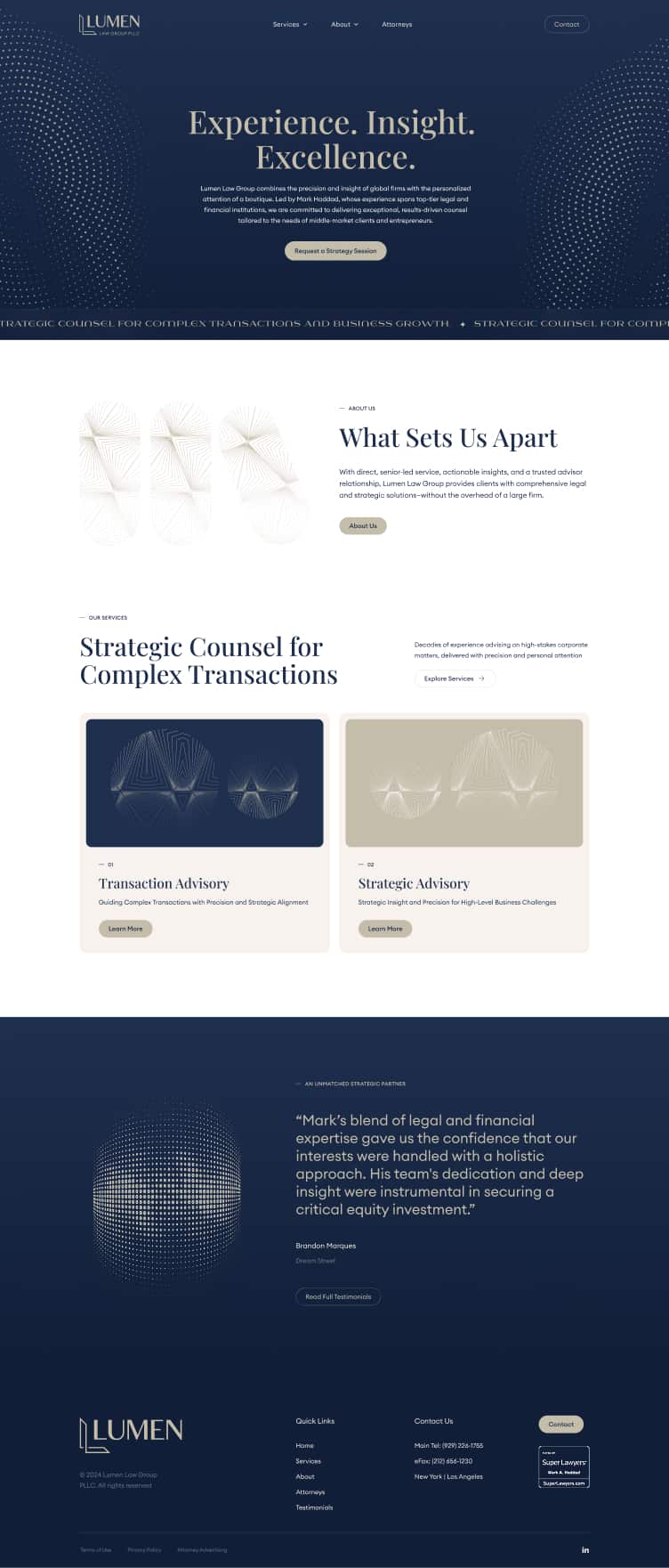 Brand transformation and digital experience for a boutique corporate firm in New York and Los Angeles