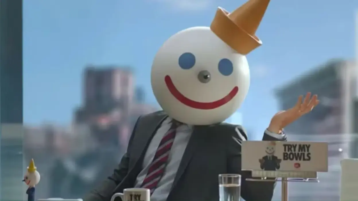Jack in the Box’s “Jack Box,” a man with a ping-pong ball clown head, emerged in 1994 in one of fast food’s boldest rebranding moves. Earlier in the chain’s history, the “jack-in-the-box” clown had been an emblem perched atop drive-thru intercoms, but in the 1980s, the company destroyed these to pivot away from a kiddie clown motif. After a major E. coli outbreak in 1993 severely hurt Jack in the Box’s reputation, the brand needed a new approach. Ad agency Chiat/Day revived the clown concept: in the first commercial, the newly suited, sarcastic Jack literally detonates the boardroom that canceled him, proclaiming himself CEO. This rebellious reintroduction gave the chain a fresh comedic identity—Jack Box would be an icon who fights stale corporate attitudes to deliver better fast food.